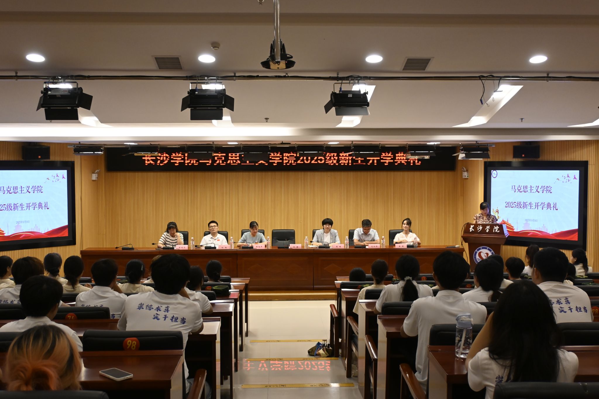 9月9日15时,长沙学院马克思主义学院在图书馆一楼学术报告厅举行2025级新生开学典礼暨入学专业教育。学院班子成员、班主任、教师代表、全体2025级新生参加。典礼由学院党总支书记刘静主持。马克思主义学院2025级新生开学典礼现场典礼在庄严的国歌声中正式开始。“你们的到来,为学院注入了新鲜血液,为思政教育这份光荣事业增添了青春力量!”院长侯旭平教授首先致欢迎辞。她以《用真理之光点亮青春梦想》为题,从为何选择“思政”、...
