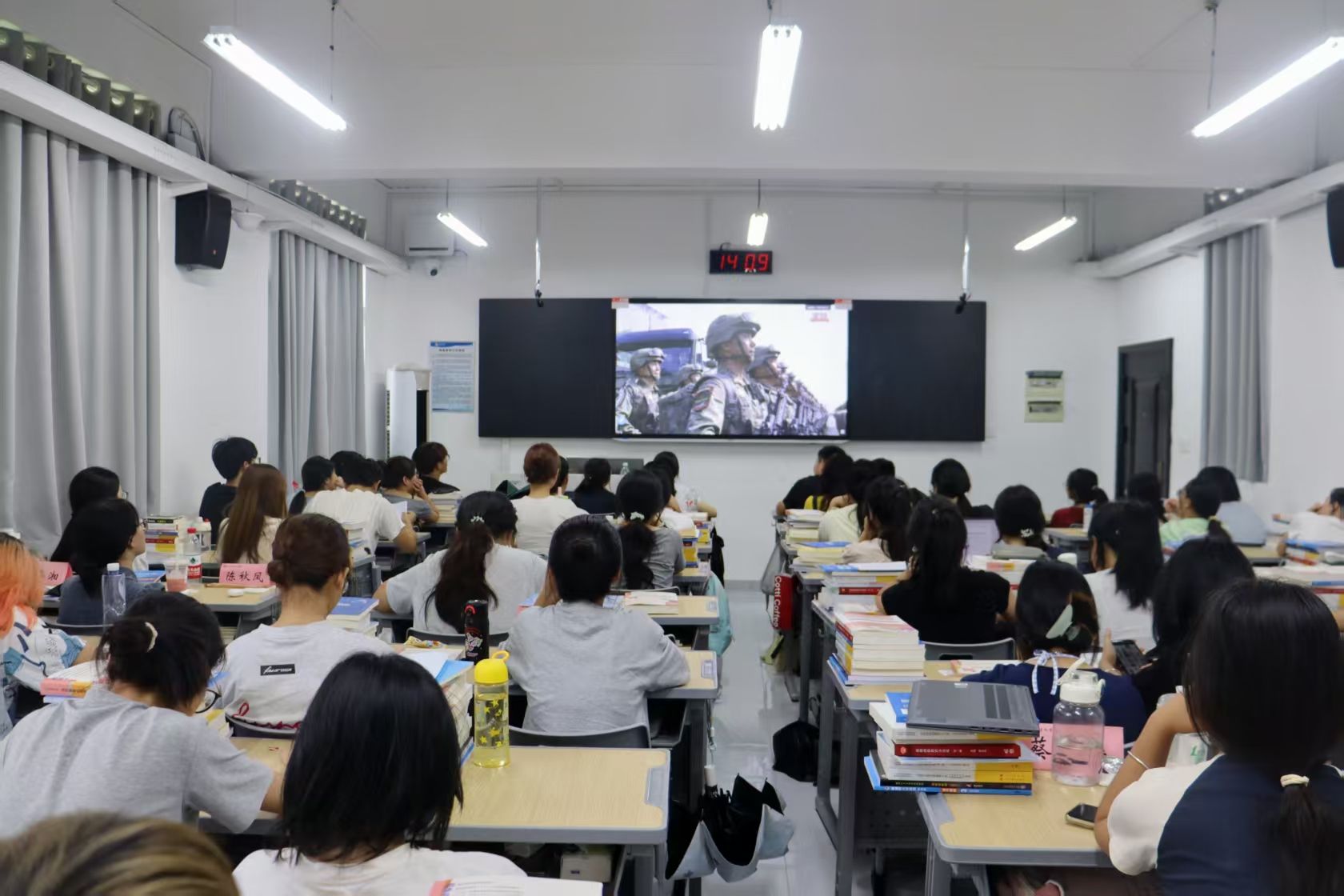 9 月3日上午,学院组织师生集中观看纪念中国人民抗日战争暨世界反法西斯战争胜利80周年大会。当受阅部队驶过天安门广场时,会场响起阵阵掌声,师生们为国家军事实力的日益强盛感到由衷自豪。