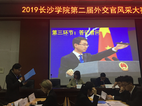 6月13日晚,由马克思主义学院主办,模拟联合国协会承办的“长沙学院第二届外交官风采大赛决赛”在致远楼学术报告厅顺利举行。马克思主义学院贺革书记、指导老师胡腾蛟副教授、模拟联合国协会现任副会长石灵、前任副会长范亚楠应邀担任评委。近200名学生到现场观摩比赛。