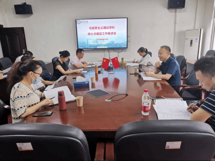 随后,蒋晓东根据“申请硕士学位授予一级学科点简况表”汇报了马克思主义理论学科硕士点建设工作的进展情况,对照建设要求对每位骨干教师的教学科研情况进行了精准分析,明确了各位骨干教师的工作任务及完成时限,要求各位骨干教师抢抓机遇,积极申报各类项目、发表论文、出版著作,提升科研成果水平,特别强调要把握时间节点,克服困难,补缺补差,确保按时完成对标达标提升工作。