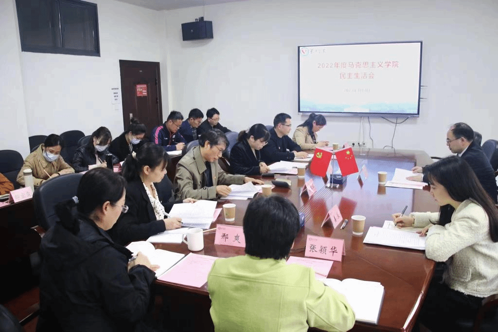 2023年4月4日下午,马克思主义学院在涵虚楼B2504会议室召开2022年度马克思主义学院民主生活会,联系马克思主义学院的校领导党委书记杨小云到会指导。