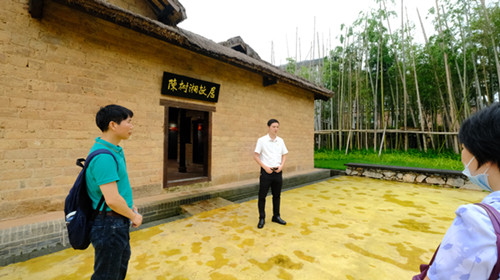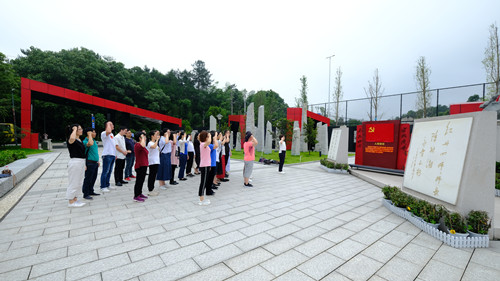 讨论结束,全体党员佩戴党员徽章,在陈树湘的纪念像前高举右手、握紧拳头,重温入党誓词。随后,党员们还参观了影珠山抗战遗址群。