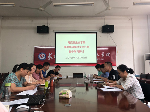 8月29日下午,马克思主义学院理论学习中心组在涵虚楼A1304开展2019年度第6次集中学习研讨,深入学习贯彻中共中央办公厅 国务院办公厅《关于深化新时代学校思想政治理论课改革创新的若干意见》精神。