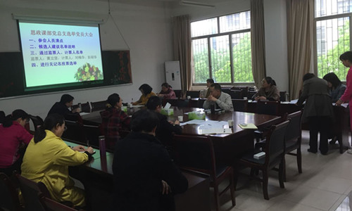 为进一步加强和改进学校基层党组织建设,2016年3月,经学校批准思想政治理论课教学部改设党总支,下设两个教工党支部。4月26日思政课部党总支召开党员大会,选举产生了新一届党总支委员会和支部委员会。会议由党总支书记贺革主持。