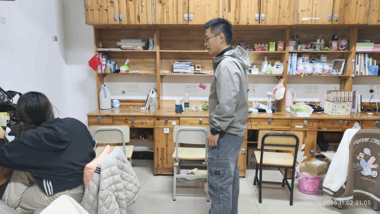 检查过程中,柳老师与同学们亲切交流,详细了解大家的学习生活近况,耐心宣讲宿舍安全的重要性,特别是秋冬季用电、防火的注意事项,叮嘱同学们务必做到人走断电,严禁使用明火及大功率违规电器,共同维护宿舍公共安全。学生预备党员和自委会学生干部认真负责,逐一记录各宿舍的检查情况,对发现的部分卫生死角、物品堆放杂乱、插线板使用不规范等现象进行了现场提醒。此次活动不仅是一次常规的宿舍检查,更是一堂生动的安全教育与实践课。