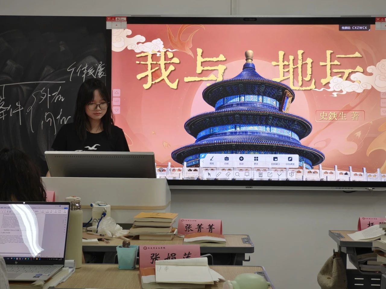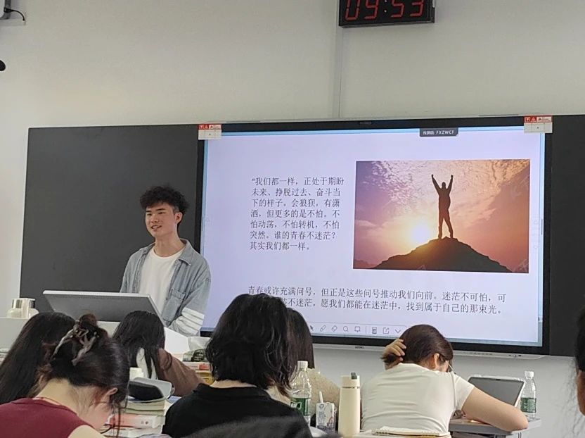 赵雯雯同学以扎实的文本解读与理性思辨,深入剖析史铁生笔下“生与死”的哲学命题。她从作者初入地坛时的绝望与迷茫切入,结合史铁生双腿瘫痪后的心路历程,系统梳理其从质疑生命意义到重寻生存价值的思想转变脉络。通过解读地坛中荒芜却充满生命力的意象,以及母亲隐忍而深沉的爱,层层探讨生命的本质与存在的价值。同时,她还将书中哲思与当代青年面临的学业压力、未来焦虑等现实困境相联结,引导在场同学思考如何在逆境中坚守希望,为大家带来极具启发性的思考视角。