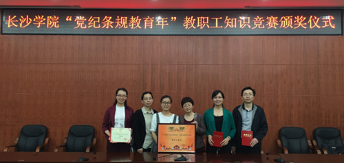 5月24日下午,学校开展了教职工党员学习《准则》、《条例》知识竞赛活动。我部党总支派出王思乂、黄立坚等5人代表队参赛,经过激烈的角逐,最终获得团体第二名的好成绩,邢爽、刘格华、周初开3位老师获得个人三等奖。