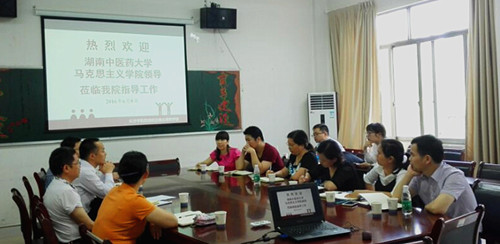 6月8号上午,湖南中医药大学马克思主义学院党委书记、院长叶利军一行8人来我部调研。周执前主任热情接待了叶利军一行。党总支贺革书记、副主任蒋晓东及教研室主任张颖华、周初开等参加了座谈会。