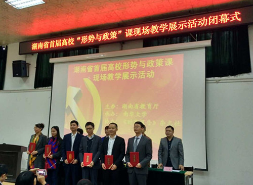 据悉,此次“形势与政策”课教学展示活动由省教育厅主办,南华大学承办,中宣部《时事报告》杂志社湖南站协办,旨在深入贯彻中宣部、教育部印发的《普通高校思想政治理论课建设体系创新计划》,不断加强“形势与政策”课规范化建设,发现培养一批优秀骨干教师,大力推进党中央治国理政新理念、新思想、新战略进教材、进课堂、进头脑。大赛经过初赛、复赛,共18所本科高校的微课作品进入到最后的决赛。(作者:刘丽萍)