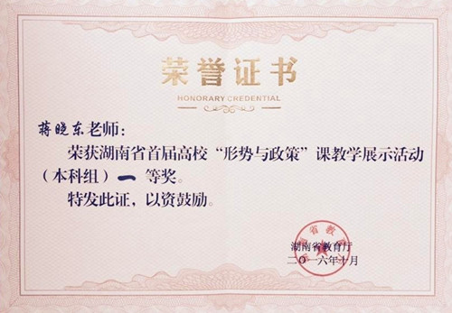 10月29日,湖南省首届高校“形势与政策”课教学展示活动决赛在南华大学举行,现场授课展示环节持续了近5个小时,来自全省高校的150多位教师代表观摩了这次决赛。我部蒋晓东老师荣获本科组一等奖。