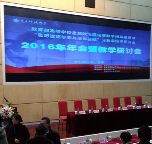 11月26-27日,教育部高等学校思想政治理论课教学指导委员会“思想道德修养与法律基础”分教学指导委员会在四川成都电子科技大学举行了2016年年会暨教学重点难点研讨会,全国100余所高校的200来位学者专家与会。我部“基础”课教研室黄立坚主任和邓辉平老师参加了会议。