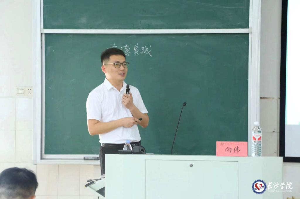5月23日下午,2024年湖南省高校思政课教师开放式课堂培训(《思想道德与法治》)最后一期培训在衡阳师范学院东校区举行。本次开放式课堂培训由第三届全国高校思政课教学展示竞赛活动一等奖获得者、我院向伟副教授主讲,来自全省90余所高校的500多名思政课教师参与培训。
