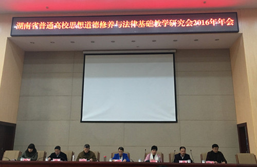 2016年12月10—11日湖南省普通高校“思想道德修养与法律基础”教学研究会2016年年会在郴州湘南学院召开。思政课部“基础”教研室黄立坚主任带领肖毅、洪爱桃、邓辉平3名老师参会。