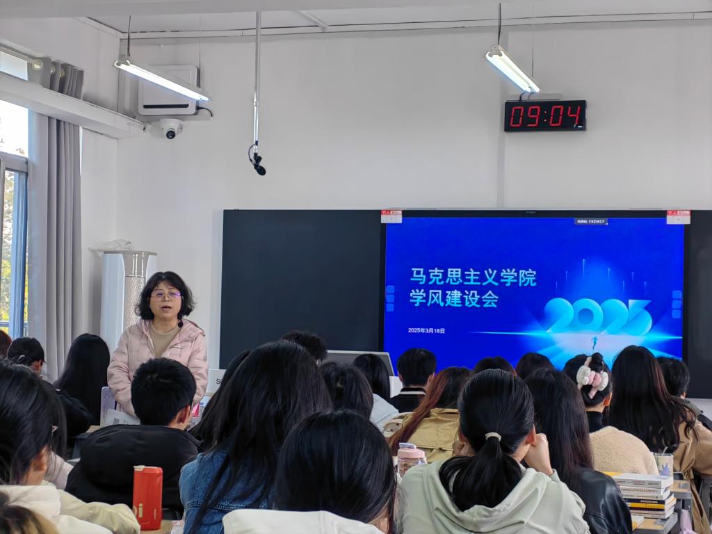 为扎实推进学校本科教育教学审核评估工作,切实解决近期学院学风建设突出问题,3月18日与19日上午,马克思主义学院党总支书记刘静分别面向2023级、2024级全体学生主持召开学风建设专题会议,围绕学风建设内涵、现存问题及改进措施展开深入动员。