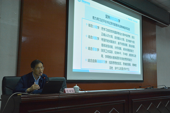 5月27日下午,思政课部全体党员听取了湖南商学院党委书记唐亚阳教授关于学习习近平总书记系列重要讲话精神的辅导报告。