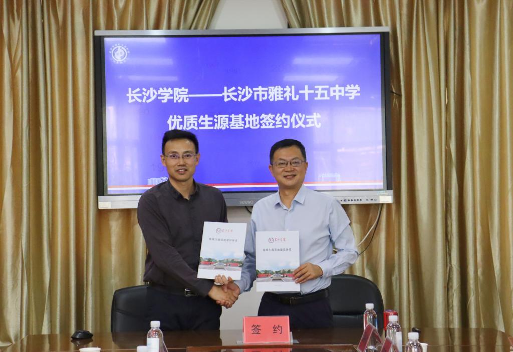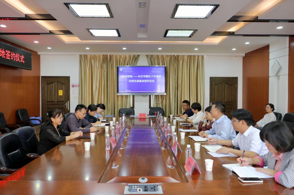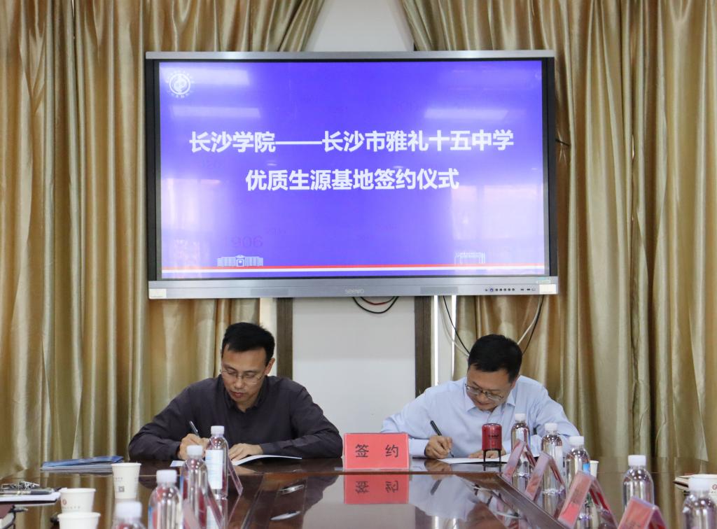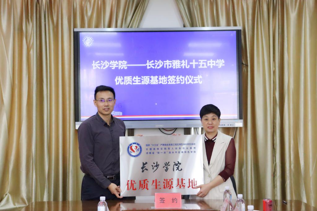 随后,双方与会领导签署了优质生源基地合作协议,黎文普代表学校为市十五中授予“长沙学院优质生源地”牌匾。接下来,我校将加强与中学的紧密联系,充分发挥学校综合资源优势,完善人才协作培养机制,以此更好地推进素质教育,不断深化教育教学改革,努力提升办学水平。