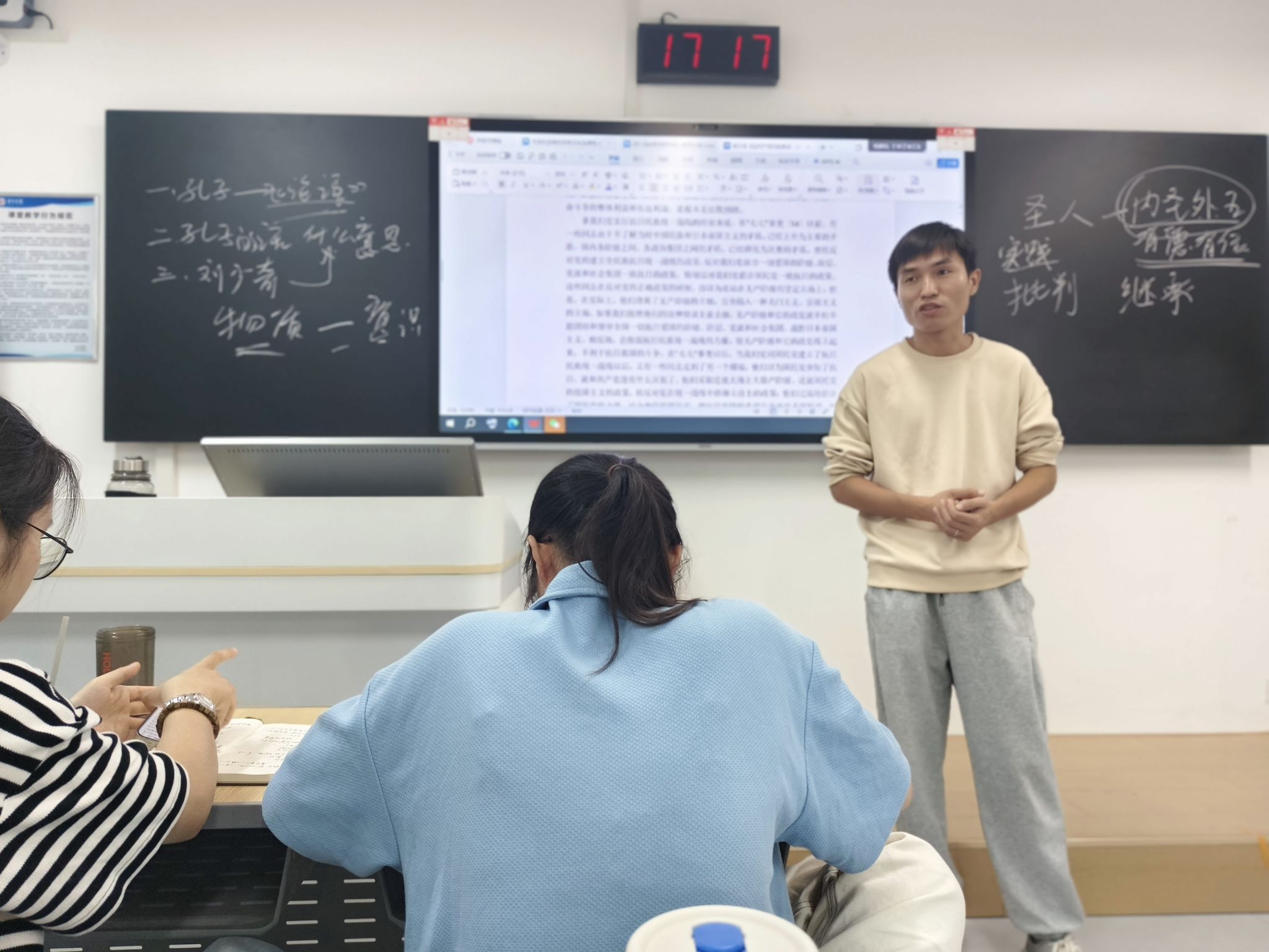 2025年10月12日,马克思主义学院张丰赟老师主讲的读书会在第一综合楼4002顺利开展。本次活动以“传统文化”为核心,通过“同学分享+老师精讲”的互动模式,让“学”与“思”深度交融。