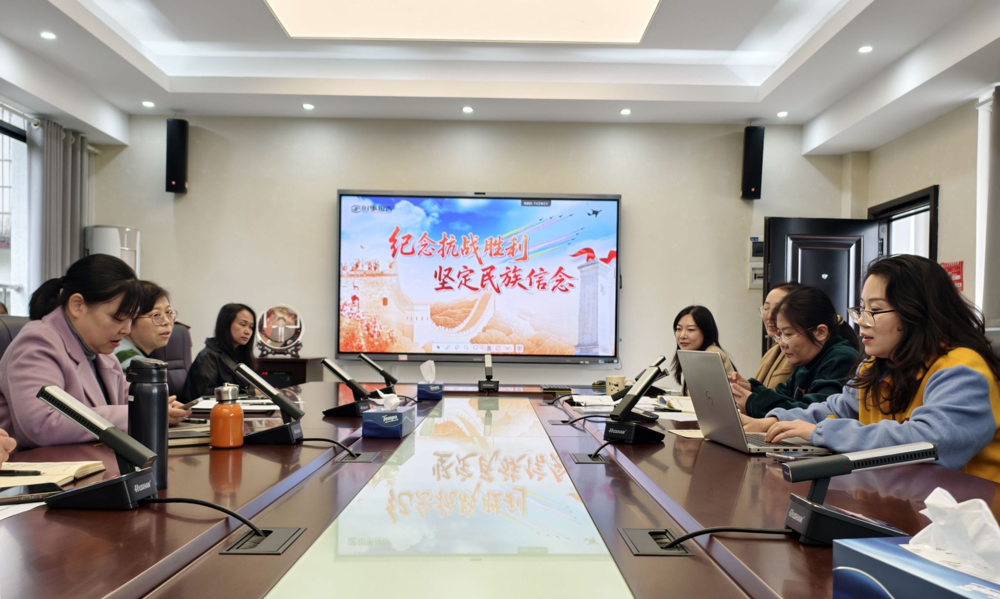 备课会组织学习了教育部最新教学要点。专题负责教师侯旭平、徐晓阳、徐秀良、戴薇薇依次围绕《学习贯彻党的二十届四中全会精神》《纪念抗战胜利 坚定民族信念》《正确认识中国经济热点问题》《践行多边主义 完善全球治理》四个专题,就课堂导入、案例选取、互动设计等教学环节进行了系统阐述和分享。说课环节后,与会教师聚焦课程内容更新、教学方法创新等方面展开深入交流,提出优化建议,并分享了各自的教学经验。