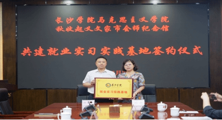 随后,刘静就长沙学院以及马克思主义学院的发展、优势与特色、思想政治教育专业人才培养目标等情况作了详细介绍。侯旭平认为,校馆双方可在宣传教育、文物的保护、利用和开发、精品党课打造、红色主题活动策划、研学基地、文创产品宣可以开展广泛合作,尤其要深入合作挖掘秋收起义文物背后的故事与精神。馆长陈国强听了双方介绍后认为,校馆共建有需要、合作有基础、发展有前景。 最后刘静和陈国强馆长代表双方进行签约与授牌仪式。