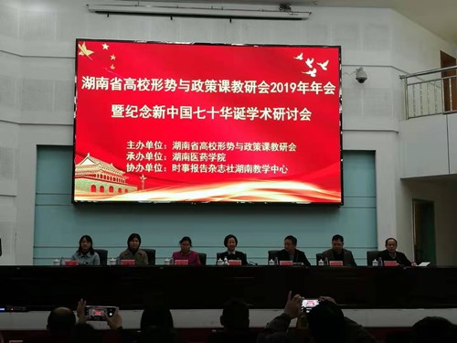 12月7日-8日,湖南省高校形势与政策课教研会2019年年会暨庆祝新中国成立70华诞学术研讨会在湖南怀化召开。会议由湖南省高校形势与政策课教研会主办,怀化医药学院、南华大学联合承办。来自全省几十所高校的德育工作者、思政课教师代表共100余人参加了研讨会。我院党总支书记谷建春教授、薛其林教授、齐素泓副教授共三人参加了此次会议。