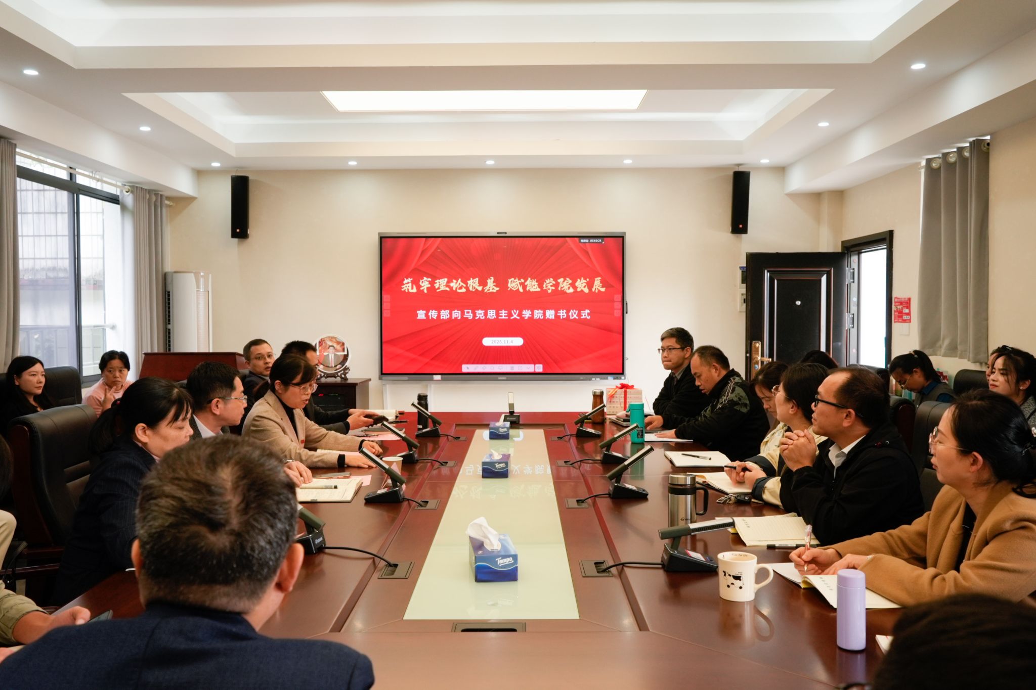 2025年11月4日下午,“筑牢理论根基 赋能学院发展”赠书仪式在马克思主义学院3009会议室顺利举行。学校党委宣传部常务副部长徐远超与马克思主义学院全体教师共同参加了本次活动。