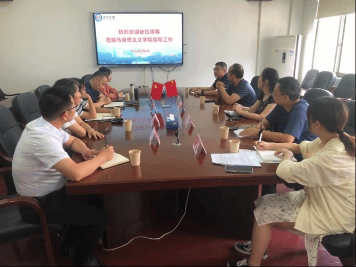2022年9月2日上午,曾广胜副校长、教务处副处长吴庆华、继续教育学院副院长张丹、教务处王川老师和袁馨老师一行五人来到马克思主义学院调研国家一流课程建设情况。马克思主义学院院长蒋晓东、党总支书记刘静、副院长陆启越、课程负责人薛其林教授和侯旭平教授以及部分老师参加了会议。