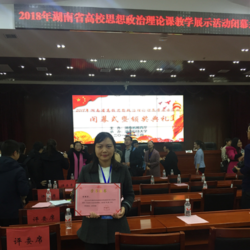 2018年12月2日,由湖南省教育厅主办,湖南科技大学承办的湖南省高校思想政治理论课教学展示活动落下帷幕。我校马克思主义学院教师刘丽萍获得二等奖,胡腾蛟、严向远获得三等奖。