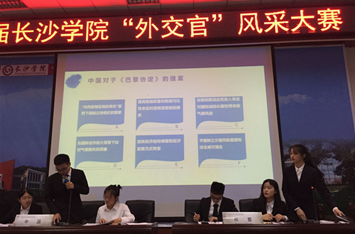 6月3日晚,由马克思主义学院主办,模拟联合国协会承办的2018年长沙学院“外交官”风采大赛决赛在致远楼学术报告厅顺利举行。马克思主义学院周执前院长、贺革书记、蒋晓东副院长、胡腾蛟博士、模联协会现任会长刘乃源应邀担任评委。近300名学生到现场观摩比赛。